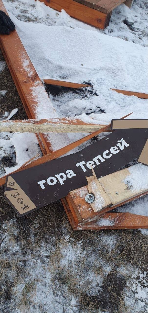 Вот такие грустные кадры с места погрома показали специалисты ТИЦ Хакасии. Версия про порывы ветра исключена. При осмотре стало понятно, что хулиганы намеренно сломали объект.